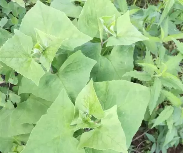 多年生草本。高40一150cm。茎直立,较粗壮,具细棱,上部常分枝,并密生被腺状短柔毛。叶下部叶花期枯萎,中部叶三角状戟形,长10–18cm,宽13–19cm,先端渐 山尖子 尖,基部截形或近心形,在叶柄处下延戊翼,叶柄长4一5cm,边缘具不整齐的尖齿,上面绿色,疏被短毛,下面淡绿色,密被柔毛:上部叶渐小,三角形或矩圆状菱形。头状花序多数,下垂,于茎顶排列戍狭金字塔形,总苞筒状,长9–12mm,宽约8mm,总苞片8,披针形,花两性皆为管状,6一19个。瘦果黄褐色,长约7mm,冠毛,白色(图98)。
