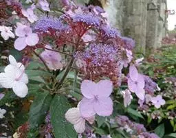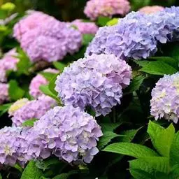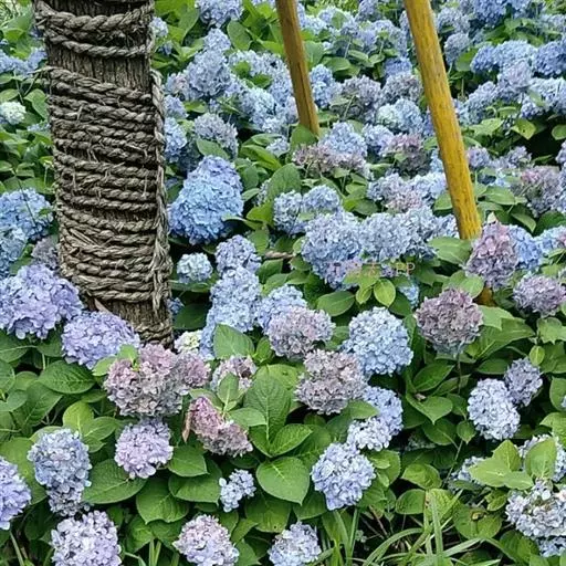 绣球又名草绣球,6月-7月开花。花初开白色,渐转粉红或蓝色,大球形,系由不孕性花组成。众花怒放,如同雪花压树,妩媚动人。它枝叶密展,根肉质,适应性强,既能地栽于家庭院落、天井一角,也宜盆植为美化阳台和窗口增添色彩。