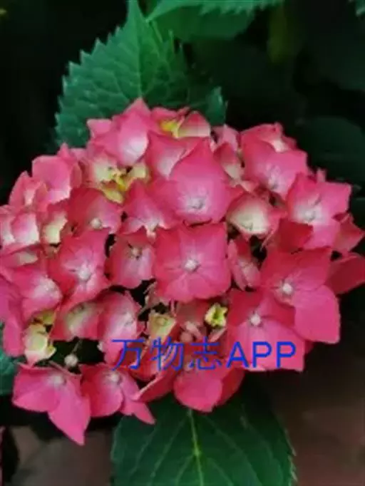 绣球(学名:Hydrangea macrophylla (Thunb.) Ser. ) : 为虎耳草科绣球属植物。灌木,高1-4米;茎常于基部发出多数放射枝而形成一圆形灌丛;枝圆柱形。叶纸质或近革质,倒卵形或阔椭圆形。伞房状聚伞花序近球形,直径8-20厘米,具短的总花梗,花密集,粉红色、淡蓝色或白色;花瓣长圆形,长3-3.5毫米。蒴果未成熟,长陀螺状;种子未熟。花期6-8月。