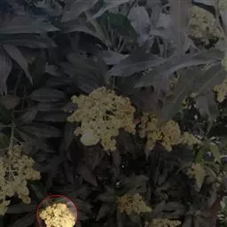 该变种与原变种的主要区别在于,其花序只有少数不育花,多数为孕性花,且花序顶端平,不呈近球状或头状。花期7月。