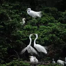 雪鹭:全身洁白的羽毛,颈背有丝状蓑羽。有一双亭亭玉立黄色长腿和一个黑色的鸟喙。在繁殖季节,鼻孔和眼…
