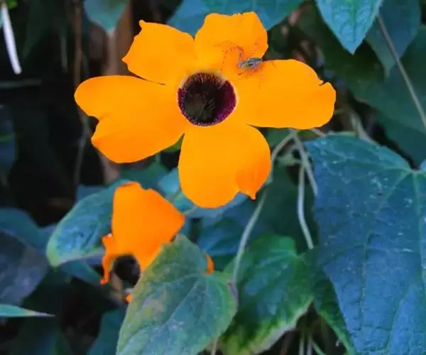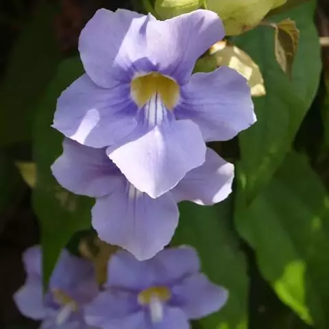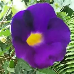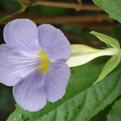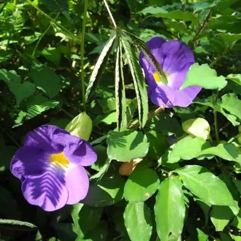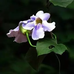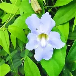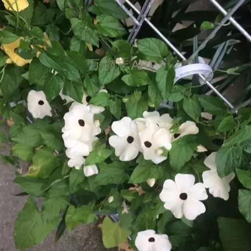 翼叶山牵牛(学名:Thunbergia alata Bojer et Sims)是爵床科,山牵牛属缠绕草本植物。茎被倒向柔毛。叶柄具翼,叶片卵状箭头形或卵状稍戟形,先端锐尖,两面被稀疏柔毛间糙硬毛,背面稍密;脉掌状,花单生叶腋,小苞片卵形,先端急尖或渐尖,钝,萼大小齿;冠檐裂片倒卵形,冠檐黄色,喉蓝紫色;花丝无毛,子房及花柱无毛;果实被开展柔毛。