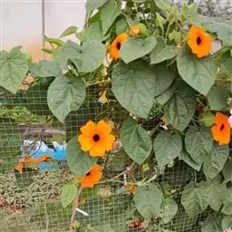 垂直绿化在阳台、露台、花架等小环境布置中,可用翼叶山牵牛进行垂直绿化。当年播种,当年就能达到很好的观赏效果。在布置中,可利用花色的差异进行搭配,营造轻松活泼的感觉。