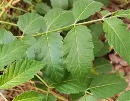 落叶乔木,高达20米。树皮黄褐色或灰褐色。小 梣叶槭 枝圆柱形,无毛,当年生枝绿色,多年生枝黄褐色。冬芽小,鳞片2,镊合状排列。羽状复叶,长10-25厘米,有3-7(稀9)枚小叶;小叶纸质,卵形或椭圆状披针形,长8-10厘米,宽2-4厘米,先端渐尖,基部钝一形或阔楔形,边缘常有3-5个粗锯齿,稀全缘,中小叶的小叶柄长3-4厘米,侧生小叶的小叶柄长3-5毫米,上面深绿色,无毛,下面淡绿色,除脉腋有丛毛外其余部分无毛;主脉和5-7对侧脉均在下面显著;叶柄长5 7厘米,嫩时有稀疏的短柔毛淇后无毛。