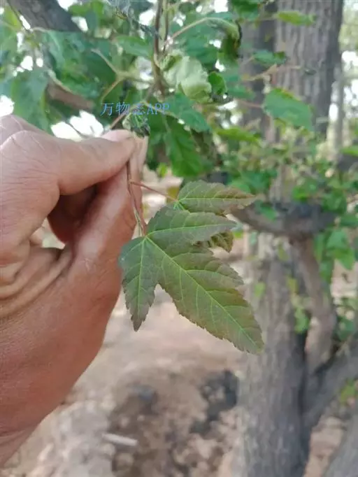 (2)长梗槭系:叶宽而短,较小,常宽6-9厘米,长6-11厘米,外貌近于长圆卵形或卵形,长度大于宽度约1/10至3/10,3-5裂,裂片尾状锐尖或长,尾状锐尖。