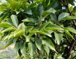 乔木,高10-20米;树皮深灰色;小枝棕褐色,密生白色皮孔,无毛。叶厚纸质,椭圆形、矩圆形、卵状披针形,长6-11厘米,宽3-5厘米,顶端渐尖、尾状渐尖至长尾状,基部圆楔形、圆形兼有微心形,有时两侧略不等,边缘具规则或不规则的重锯齿,除背面沿脉疏被长柔毛及有时脉腋间具稀少的髯毛外,均无毛,侧脉12-15对;叶柄较细长,长(10-)15-30毫米,多数无毛,偶有稀疏长柔毛或短柔毛。果序长5-15厘米,直径2.5-3厘米,下垂;序梗疏被短柔毛;序轴纤细,长1.5-4厘米,无毛;果苞长1.5-2.5(-3)厘米,内外侧基部均具裂片,近无毛;中裂片半卵状披针形至矩圆形,长1-2厘米,内侧边缘全缘,很少具疏细齿,直或微作镰形弯曲,外侧边缘具齿牙状粗齿,较少具不明显的波状齿,内侧基部的裂片卵形,长约3毫米,外侧基部的裂片与之近相等或较小而呈齿裂状。小坚果宽卵圆形,长3-4毫米,无毛,有时上部疏生小树脂腺体和细柔毛,具少数细肋。 [1-3]