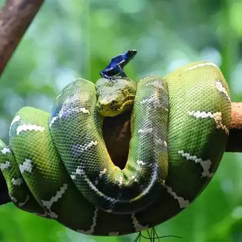 绿树蟒是爬行纲有鳞目蟒科树蟒属的脊索动物。绿树蟒,身体粗壮,头部和颈部区分明显;头部鳞片细小,粒状,…