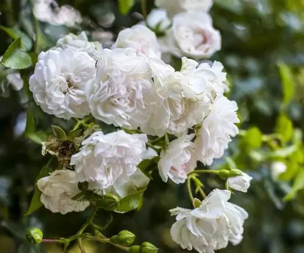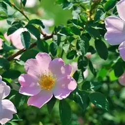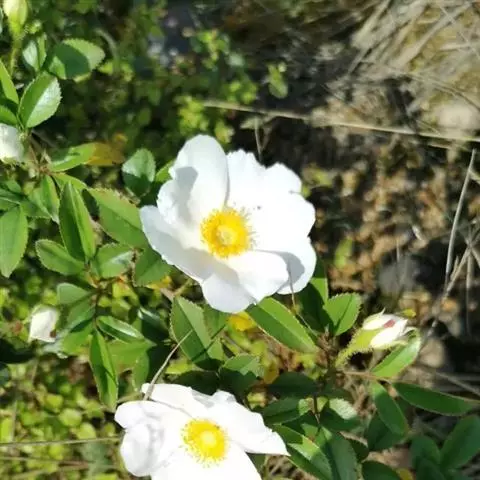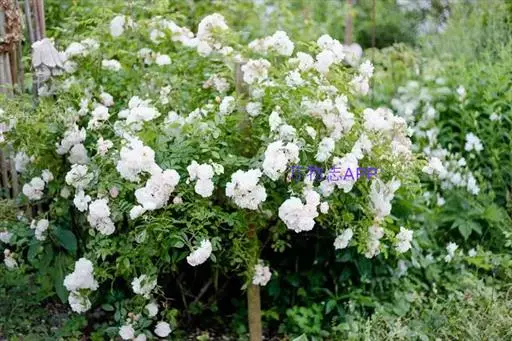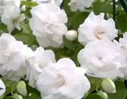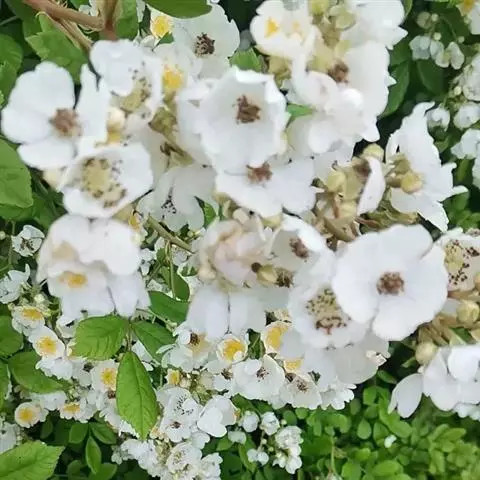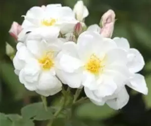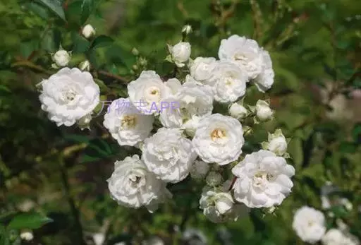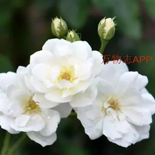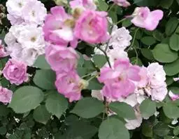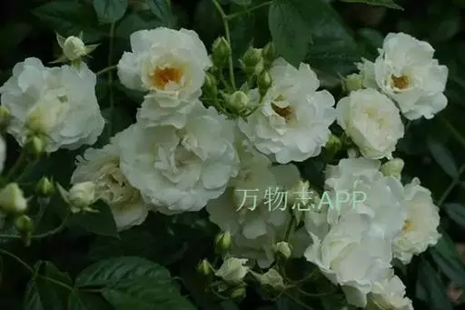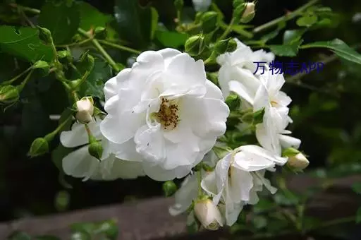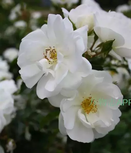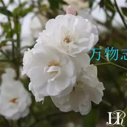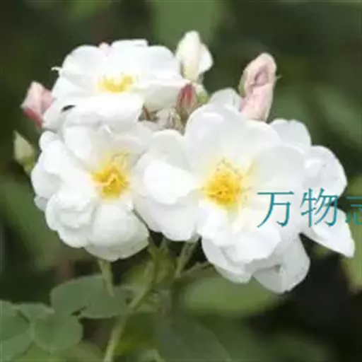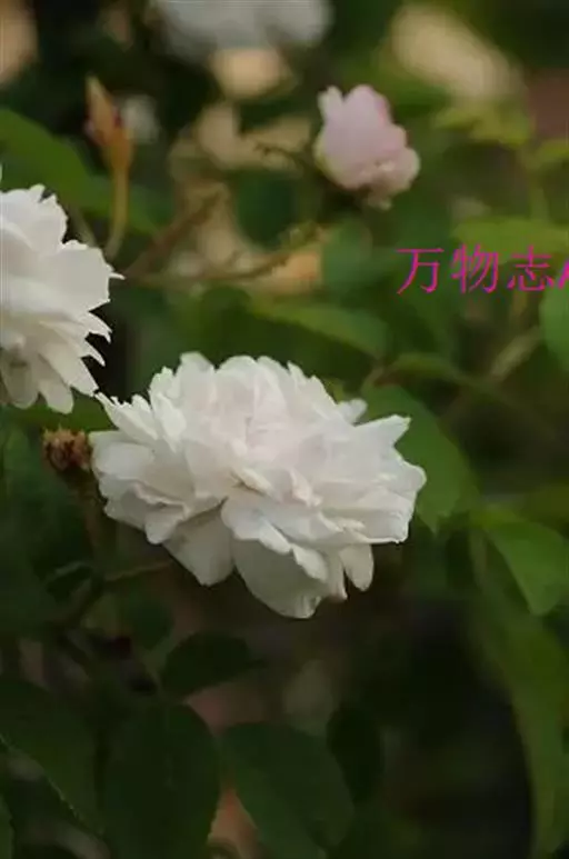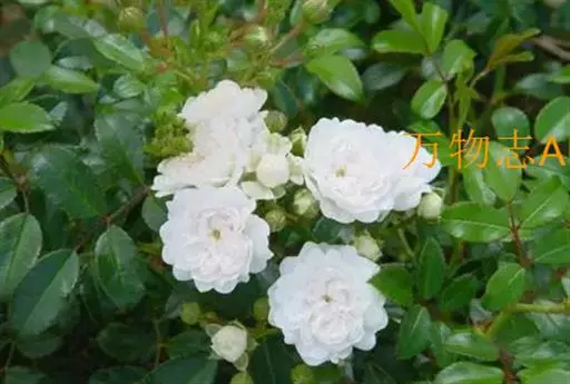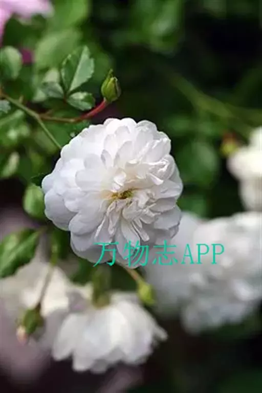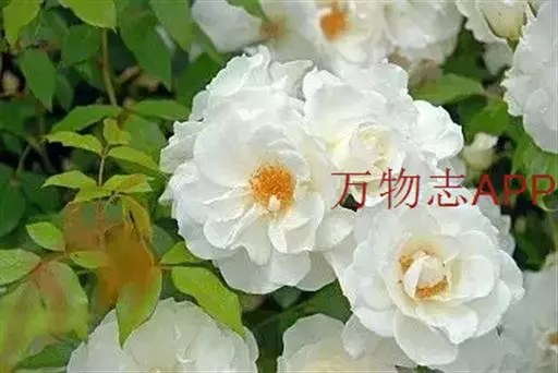 白蔷薇(学名:Rosa ×alba Linn.):直立灌木,高约2米;小枝有不等钩状皮刺,有时混有刺毛。小叶通常5,稀7,宽椭圆形或卵形,边缘有单锯齿,下面被毛,托叶宽,半边有锯齿。花排列成伞房状,直径6-8厘米;萼筒光滑,萼片卵状披针形,有羽状裂片,外被腺毛;花瓣单或重瓣,白色或粉红色,有香味。果长圆卵形。