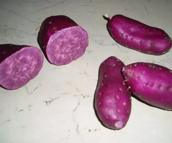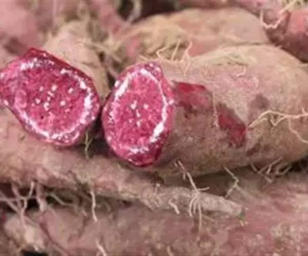 ①山川紫。该品种从日本引进,色素含量高,比普通紫红薯的花青素含量高2倍以上,除食用外还可用来提取色素。667平方米产量一般在1500公斤以上,薯形细长,整齐度差,主蔓茎长6米-7米。用该薯的嫩茎叶(尖)做菜,口感比空心菜还好。