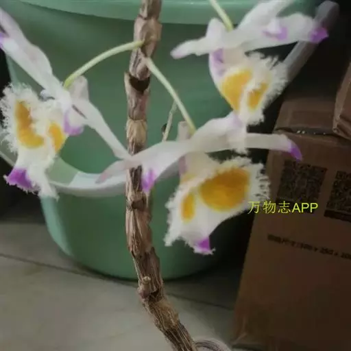 景洪石斛:茎直立,细圆柱形,多少木质化,上部常分枝,基部上方2-3个节间膨大呈纺锤形;膨大部分的茎…