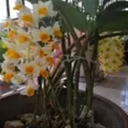 球花石斛,是兰科石斛属的多年生附生草本。茎直立或斜立,圆柱形,粗壮,基部收狭为细圆柱形,不分枝,…
