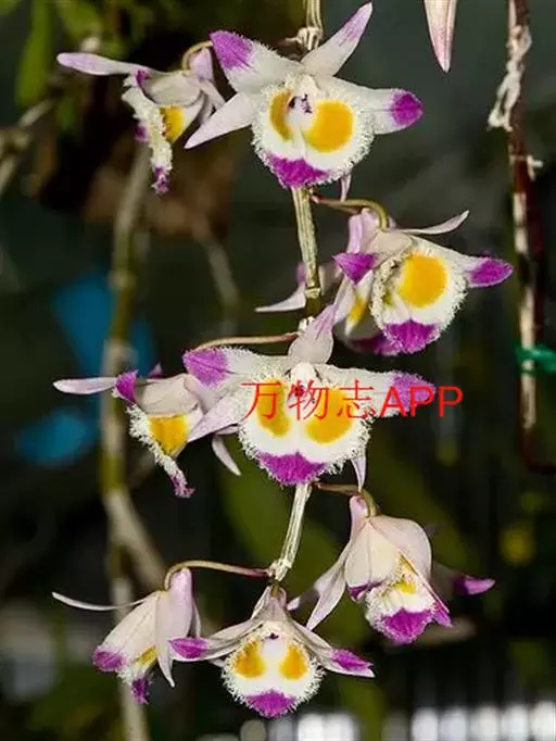 美花石斛是兰科石斛属多年生草本。茎柔弱,斜立或下垂,呈细圆柱形,有时分枝;叶互生于茎上,…