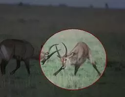 肯尼亚两只长颈鹿相互缠打 上演“脖子消失”奇特画面