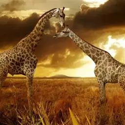 长颈鹿之间偶尔也有些争斗,不过,摩擦只是生活中很小的一点插曲,长颈鹿们互相紧挨在一起的仪式是它们生活中很重要的事情,这是为保护自己领地的集群力量的显示,也是为分配各自配偶的一种方式,长颈鹿的头部是个坚硬的角状头盖骨,这使得它们即使发生碰撞也不会导致伤害,但这种碰撞在求偶季节中很少发生过。由于身材高大,它们的交配是粗鲁的,可它们的交配权不需靠争抢打斗来决出,一个为人类大伤脑筋的三角之恋在它们那里是常见的,又是自然的。