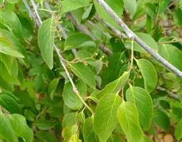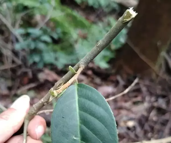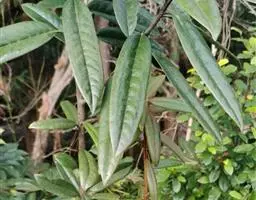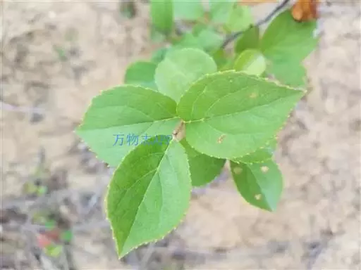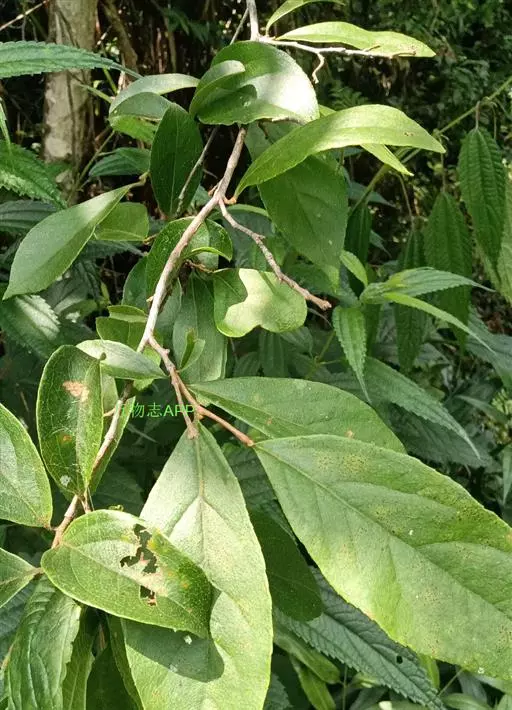 乔木,嫩枝褐色。叶薄革质,卵形、狭倒卵形、倒披针状椭圆形,长3.5-8厘米,宽1.5-3厘米,先端常呈尾状渐尖,基部楔形或圆形,边缘具浅锯齿或波状齿,有时近全缘;中脉在叶面凹下,侧脉和网脉在两面均凸起,侧脉每边4-6条;叶柄长0.5-1厘米。