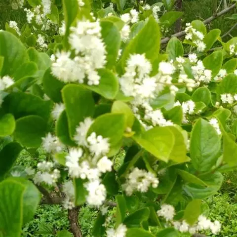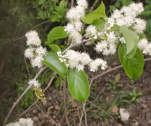 《本草纲目》:“山矾生江、淮、湖、蜀山野中,树高大者高丈许。叶似栀子,光泽坚强,略有齿,凌冬不凋。三月开花,繁白如雪,六出黄蕊,甚芬香。”