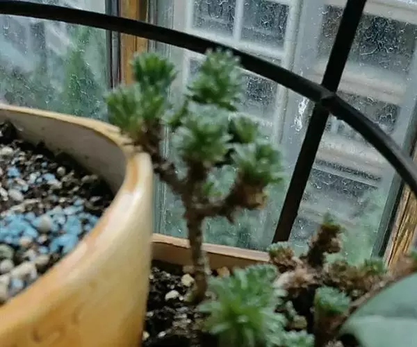 夏季高温时小松绿处于休眠状态, 植株生长基本停滞,可放在通风良好、 没有直射阳光的半阴处养护。注意控制浇水,避免雨淋,尤其是长期雨淋,以防植株腐烂死亡。到秋凉后,植株开始生长后再恢复正常管理。冬季移入室内光照充足、温度不低于10℃的地方,植株可继续生长,如果控制浇水,使植株休眠,也能耐5℃低温,甚至更低温度。