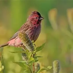 藏朱雀:全长约17-18厘米。雄鸟头部深红色具光辉,喉部暗红色具白色点斑;背部灰白色,各羽具玫瑰红…