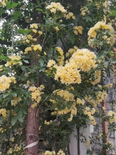 黄木香花 Rehd.)是蔷薇科、蔷薇属植物,为木香花的变型品种,攀缘小灌木,高可达6米。小叶3-5枚,…