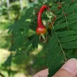 峨眉蔷薇,是蔷薇科蔷薇属直立灌木植物。峨眉蔷薇的小枝无刺或有扁而基部膨大皮刺;小叶长圆形或椭圆状长圆形,无毛;叶轴和叶柄有散生小皮刺,离生部分三角状卵形,边缘有齿或全缘;花单生叶腋,萼片披针形,全缘;花瓣白色,倒三角状卵形;蔷薇果倒卵圆形或梨形,熟时亮红色,果柄肥大,宿萼直立;花期为5-6月,果期为7-9月。峨眉蔷薇以产地命名。峨眉蔷薇产于中国多地,生于山坡、山脚下或灌丛中。峨眉蔷薇耐干旱,耐瘠薄,对土壤要求不严,在土层深厚、疏松、肥沃湿润且排水通畅的土壤中生长更好。峨眉蔷薇的繁殖方式为播种、扦插、压条。峨眉蔷薇的果实成熟时味甜,可鲜食,也可酿酒,晒干磨粉掺入面粉可作食品,其果实中含有糖及维生素等。峨眉蔷薇的果实不仅可以食用,还可入药,有止血、止痢、涩精之效。除此之外,峨眉蓄薇根皮含鞣质,可提制烤胶。