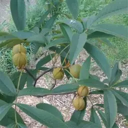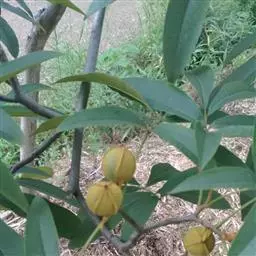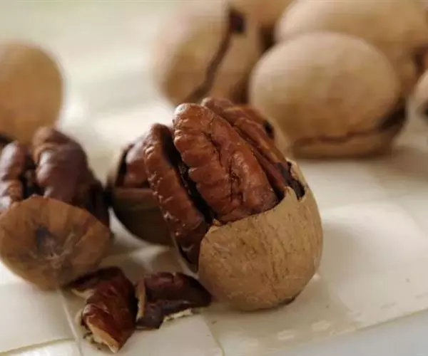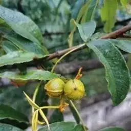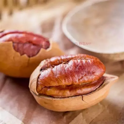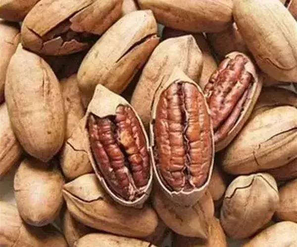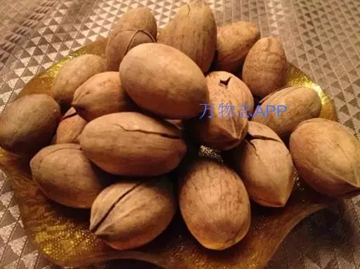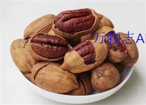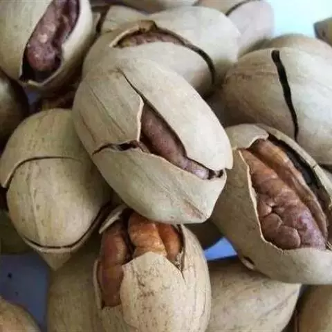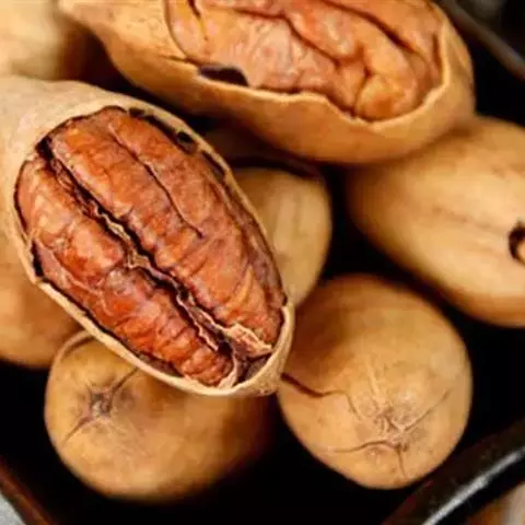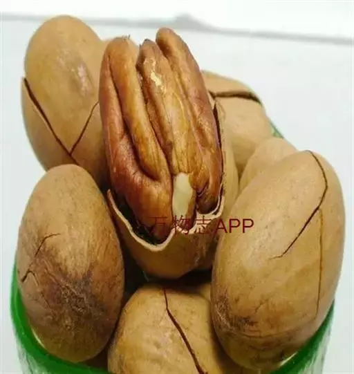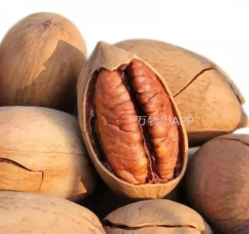 美国山核桃(Carya illinoensis Koch)属胡桃科的山核桃属,又名薄壳山核桃或长山核桃,英文名为Pecan或Hickory,原产北美大陆的美国和墨西哥北部,现已成为世界性的干果类树种之一。由于其种仁有优异的食疗保健价值。比香榧大一号,剥开是像核桃一样的果肉。壳很脆,特别好剥,就跟香榧一样脆,而肉质介于大核桃与小核桃之间。