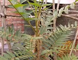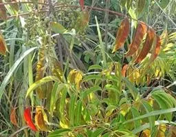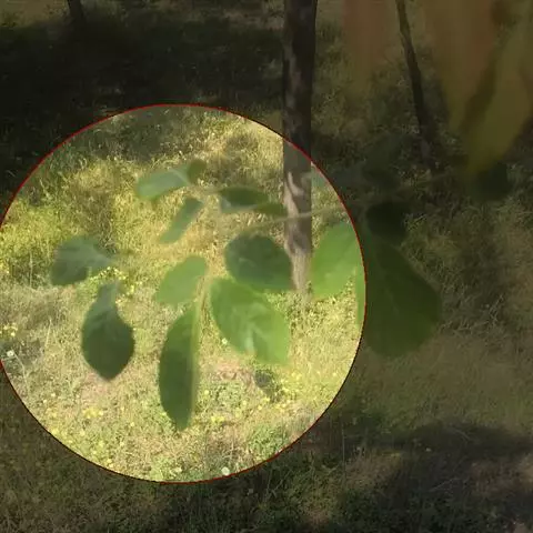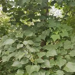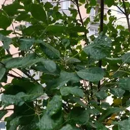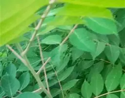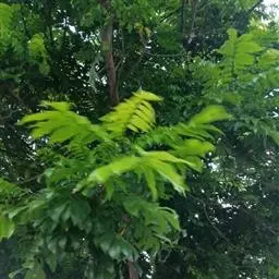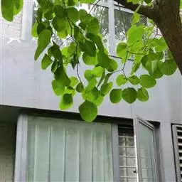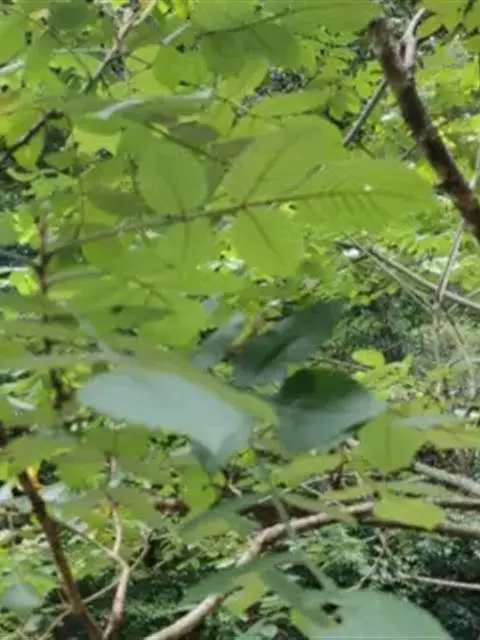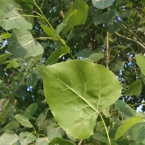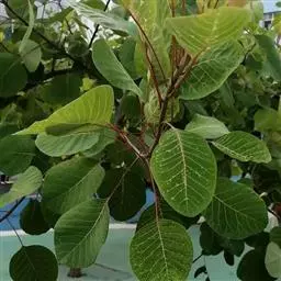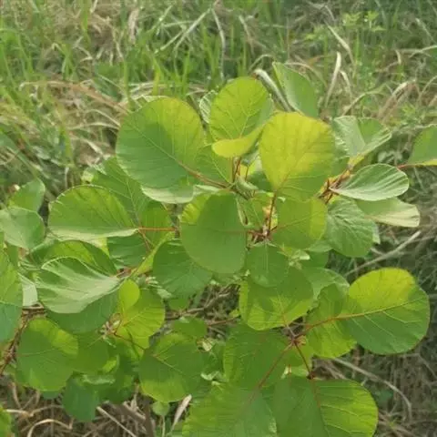 粉背黄栌叶卵圆形,较大,长3.5-10厘米,宽2.5-7.5厘米,无毛,但叶背显著被白粉;叶柄较长,…