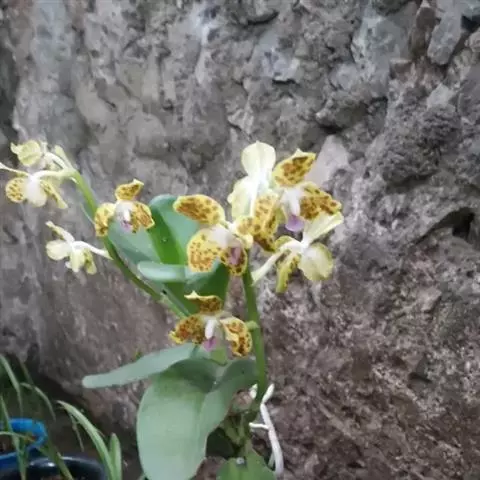 黄花白及:草本植物,植株高25-55厘米。假鳞茎扁斜卵形,较大,上面具荸荠似的环带,富粘性。茎较粗壮,…