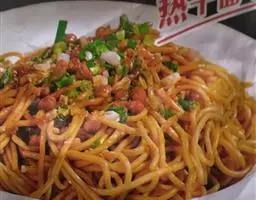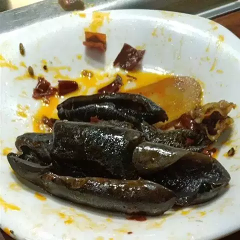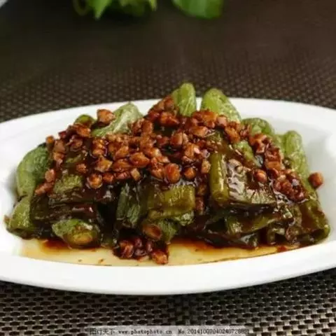 4、锅中剩少许油,把豆豉放进去煸一下,加开水调稀,勾芡。淋在尖椒上即可。