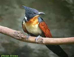 红翅凤头鹃:体长约38厘米,顶冠及凤头黑色,具显眼的直立凤头,背及尾黑色而带蓝色光泽,翅栗红色,…
