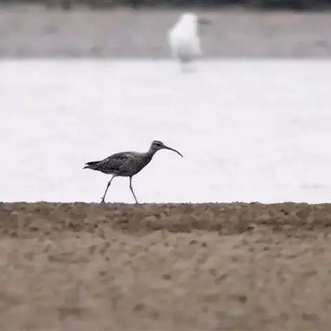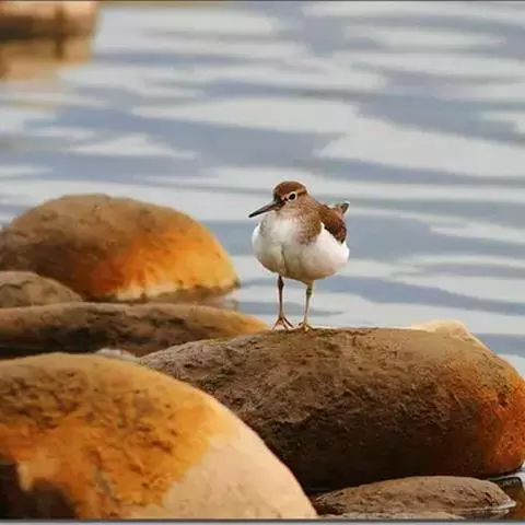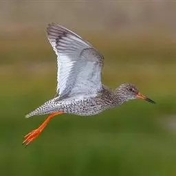 红脚鹬:体长28厘米,上体褐灰,下体白色,胸具褐色纵纹。飞行时腰部白色明显,次级飞羽具明显白色外缘。…