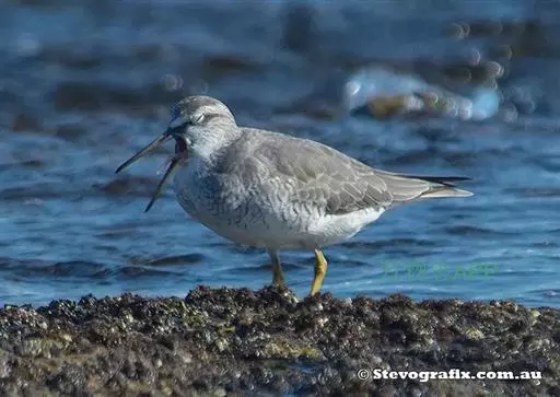 灰尾漂鹬(学名:Tringa brevipes):小型涉禽,体重75-172克,体长250-280毫米。夏季额白色,上体灰色。颏、腹和尾下覆羽白色,其余下体亦为白色,但具细密的灰色横斑。眉纹白色,眼先暗色。脚较短、黄色。嘴直、黑色,鼻沟较短,仅及嘴长的一半。冬季上体灰色,下体白色无横斑,但前颈和胸缀有淡灰色。