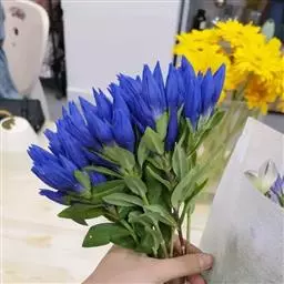 龙胆植物花色艳丽,色彩丰富,有紫、白、蓝、黄白等多种颜色,适宜作为花坛、花镜或盆花。龙胆最高不过四、五十厘米,大部份是矮小贴地丛生。一株上有许多分枝,花生于枝上顶端,成古钟形或漏斗形,有4-5个裂瓣,全缘的,也有细裂的成流海似的须。龙胆花在秋冬季一片枯黄的草丛中临风开放,显得分外朴实和幽静,龙胆开花一片片一簇簇,临风摇曳,显出一种淡雅、素静的美,因而成为著名的花卉。
