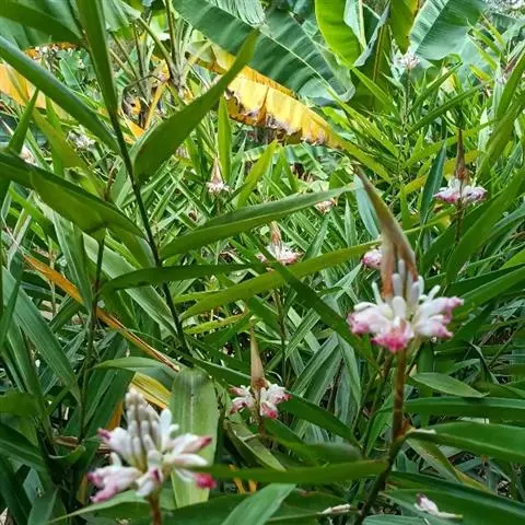 华山姜(学名:Alpinia chinensis (Retz.) Rosc.)是姜科,山姜属多年生草本植物,株高约1米。叶片披针形或卵状披针形,顶端渐尖或尾状渐尖,基部渐狭,两面均无毛;叶舌膜质,具缘毛。花组成狭圆锥花序,小苞片花时脱落;花白色,萼管状,花冠管略超出,花冠裂片长圆形,兜状;唇瓣卵形,子房无毛。果球形,5-7月开花;6-12月结果。