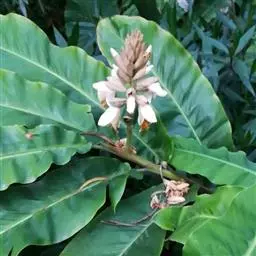 密苞山姜是姜科,山姜属多年生草本植物,株高可达1.5米。叶片椭圆状披针形,顶端渐尖,并具细尾尖,基…