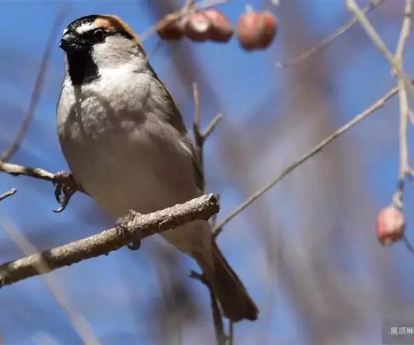 • 山麻雀:小型鸟类,体长13-15厘米。雄鸟上体栗红色,背中央具黑色纵纹,头棕色或淡灰白色,颏、喉黑色,…