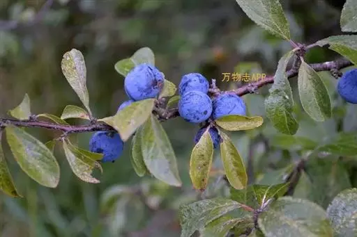 花单生,先于叶开放;花梗长6-8(15)毫米,直立,无毛或微被柔毛;花直径1-1,5厘米;萼筒钟状,与萼片近等长;萼片三角状卵形,先端急尖,边缘有细齿,萼筒和萼片外面无毛,内面近无毛;花瓣白色,长圆形,先端圆钝,基部楔形,有带浅紫色脉纹,着生在萼筒周围;雄蕊20-25,排成紧密不规则2轮,着生在花盘边缘,花盘圆盘形,雄蕊与花瓣近等长;雌蕊1,心皮无毛,柱头头状,花柱比雄蕊稍长或近等长。核果球形、广椭圆形或圆锥形,先端急尖,直径1-1.5厘米,黑色,具浅蓝色果粉,果肉绿色;核淡褐色,卵形或广椭圆形,稍扁平,先端渐尖,具起伏不平皱纹。花期4月,果期8月。