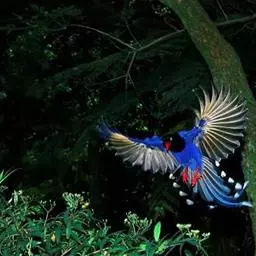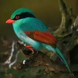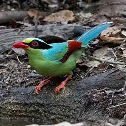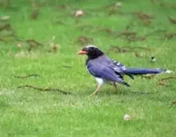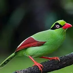 蓝绿鹊:中型鸟类,共有5个亚种。体长36-38厘米。尾长,嘴、脚红色。通体羽色主要为草绿色,…