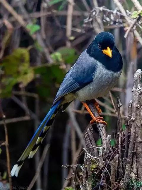 黄嘴蓝鹊是鸦科、蓝鹊属的鸟类。大型鸦类,体长45-69厘米。尾特长,呈凸状,蓝色,…