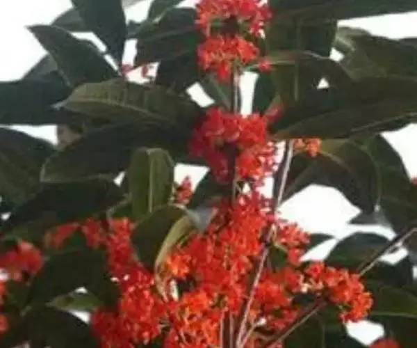 丹桂是桂花中的名贵品种,花红色,单瓣,秋季开花,香味浓郁。它与红豆、方竹、绿萼梅合称雁山四宝。广泛用于观赏、绿化,有着广阔的开发前景。