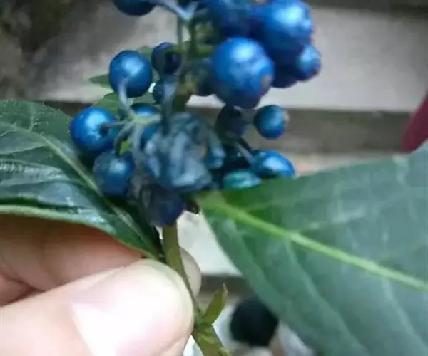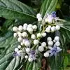 伞房状圆锥花序顶生,有时叶腋有侧生花序,直径3-20厘米,花蓝色或白色;花蕾倒卵形,盛开时直径6-10毫米;花梗长3-5毫米;花萼倒圆锥形,4-6裂;裂片阔三角形,急尖,无毛或被毛;花瓣长圆状椭圆形,稍肉质,花后反折;雄蕊10-20枚,一半与花瓣对生,花丝线形,扁平,初与花瓣合生,后分离,花药椭圆形;花柱4(5-6),棒状,柱头长圆形,子房3/4下位。浆果直径3-7毫米,蓝色,干时黑色;种子长约1毫米,具网纹。花期2-4月,果期5-8月。
