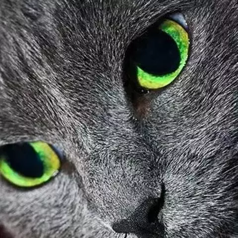 眼睛:眼大呈杏仁形,略吊眼梢;眼缘黑色,周围为褐色毛覆盖。眼色为绿、黄、淡褐等色。
