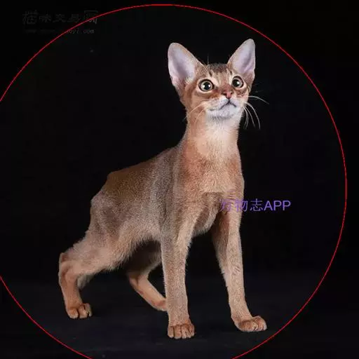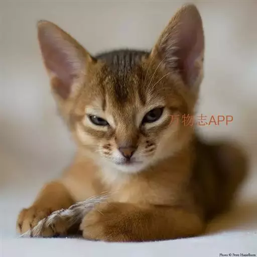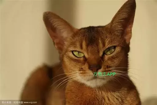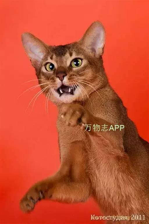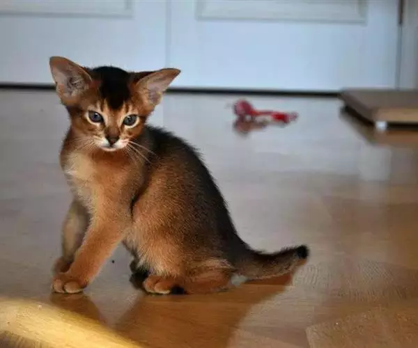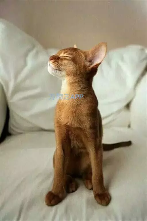 阿比西尼亚猫(英文名:Abyssinian)又称埃塞俄比亚猫、又因步态优美被誉为芭蕾舞猫。而阿比西尼亚猫的毛色同野兔相像,英国人亦称它为兔猫或球猫。阿比西尼亚猫历史悠久,传说现代的阿比西尼亚猫是古埃及被崇拜为“神圣之物”的古埃及猫的后裔。在保存下来的古埃及神猫的木乃伊中,有一种血红色的猫与它十分相像,因此,许多人认为它是古埃及神猫的直系后代。由于它的整体外形、毛色、直立耳均同非洲山猫接近,亦有人认为它源于非洲山猫。阿比西尼亚猫身躯柔软灵活,其外表与暹逻猫有些许类似,但是整个体态要比暹罗猫来得丰腴一些,阿比西尼亚猫有着楔形的脸蛋、大而尖的耳朵、呈杏仁状的双眼,眼睛的颜色为琥珀色、浅褐色或是绿色,眼睛的周围并有一圈深色的色环,像是画了眼线一般。体毛呈棕红色,间有黑色或棕色斑纹。眼绿色、黄色或淡褐色。红色阿比西尼亚猫为深棕红色。