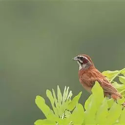 栗斑腹鹀:属小型鸣禽。体重19-25克,体长145-167毫米。头顶至背栗红色,眼先和颧纹黑褐色,…