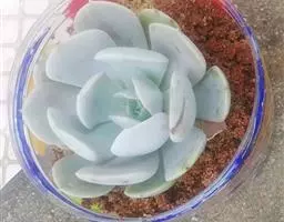 吉娃莲,景天科拟石莲花属,别名:吉娃娃,吉娃莲,植株小型,无茎的莲座叶盘非常紧凑。卵形叶较厚,带小尖,…