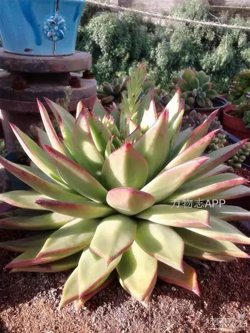 蓝石莲是景天科、拟石莲花属的多肉植物。茎部粗壮,成熟植株茎部木质化。叶片莲座型密集排列,株径不会很大,…