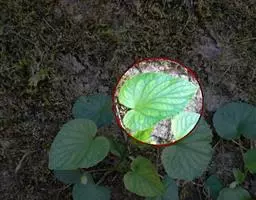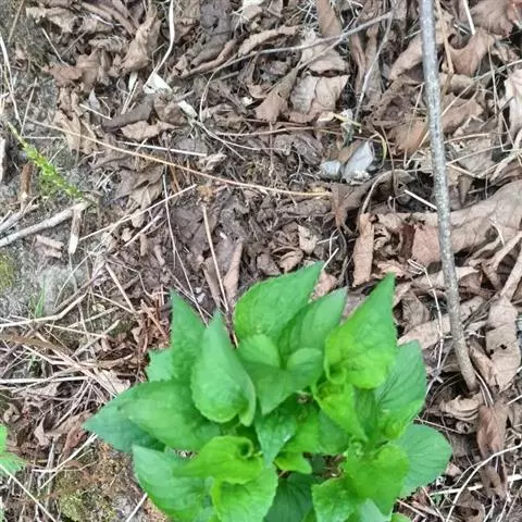 叶基生;叶片在下部者较小,呈心形,上部者较大,呈卵状心形,长6-8厘米,宽4-4.5厘米,先端渐尖,基部深心形,边缘密生浅圆齿,两面散生白色短毛,或下面无毛;叶柄长短不等,长6-11厘米,上部有极狭的翅,无毛;托叶干膜质,深褐色,披针形或宽披针形,长1-1.5厘米,边缘具长流苏状齿,无毛。