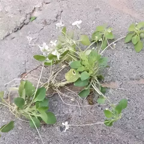 匍匐枝细长呈鞭状,长达15厘米,有互生的小形叶片,顶端常形成新植株。