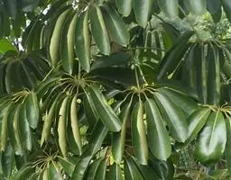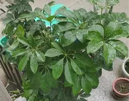 昆士兰伞木,吕松鹅掌柴 ,称昆石兰遮树,澳洲鸭脚木、方式叶鹅掌柴、伞树、大叶伞。叶片阔大,柔软下…