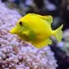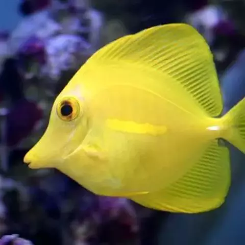 黄高鳍刺尾鱼(学名:Zebrasoma flavescens)其体卵圆而侧扁,背鳍及臀鳍硬棘尖锐,前方软条较后方延长,呈伞形;尾鳍截平。尾棘在尾柄前部,稍可活动。幼鱼及成鱼体、头部及各鳍皆一致呈鲜黄色;胸鳍有狭暗缘;尾柄棘白色。