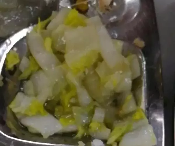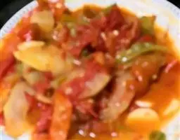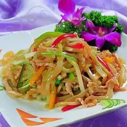 最常见又易烹制,成菜后味咸鲜,肉细嫩,色红亮,泡菜香气浓郁。牛蛙宰杀去头去皮去内脏洗净,斩成块,用盐、胡椒粉、干豆粉、料酒上浆码味。泡红辣椒去蒂去籽切成节,大葱洗净切成节,泡姜切成姜米。炒锅下油烧至七成热,将牛蛙下锅滑溜断生捞起。炒锅内下少许油烧热,下泡姜米、泡椒节炒出香味,下牛蛙,烹入料酒,放味精、大葱节簸转起锅装盘即可。